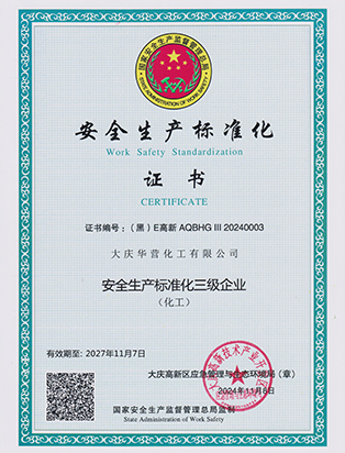 大慶華營化工有限公司成立于2006年7月10日,注冊資金3300萬元,公司類型為有限責任公司。位于大慶高新技術產業開發區宏偉園區,是一家集油田助劑產品的研發、生產、銷售和技術服務為一體的現代化高新技術企業。公司注重科技創新,公司擁有18項自主知識產權。企業承擔過國家火炬計劃重點項目、國家科技型中小企業創新項目等,2011年被科技部火炬高新技術產業開發中心評為國家火炬計劃重點高新技術企業。公司十余種產品獲得中國石油天然氣集團公司產品質量認可證書,其中粘穩型驅油劑獲國家火炬計劃重點項目證書。公司憑借多年對大慶油田及周邊油田地質情況的研究,可針對各油田地層特點調整產品的配方,更好地發揮各類油田助劑的性能。